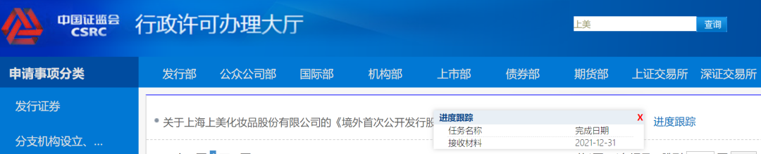 據(jù)中國證監(jiān)會(huì)官網(wǎng)信息,“韓束”和“一葉子”母公司——上美集團(tuán),已向證監(jiān)會(huì)提交境外上市申請(qǐng),并于2021年12月31日完成接收材料任務(wù)。