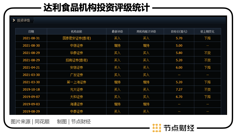 也許正是因?yàn)閷_(dá)利食品轉(zhuǎn)型的擔(dān)心,國內(nèi)機(jī)構(gòu)對公司的積極性似乎不高,半年多來給出評級的機(jī)構(gòu)不多,而反應(yīng)在估值上,達(dá)利食品十倍出頭的市盈率,也只處于行業(yè)的中下游水平。