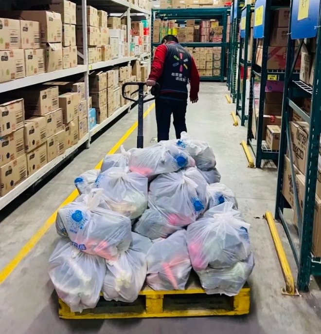 現(xiàn)在,深圳、鄭州、天津等地也出現(xiàn)了疫情。我們的同事又投入到了疫情防控和民生物資保供的工作當(dāng)中去。今天,天津市商務(wù)委員會(huì)的視頻號(hào)“GOTIANJIN購(gòu)天津”,就展示了沃爾瑪新開(kāi)路店民生商品儲(chǔ)備齊全的即時(shí)畫(huà)面。