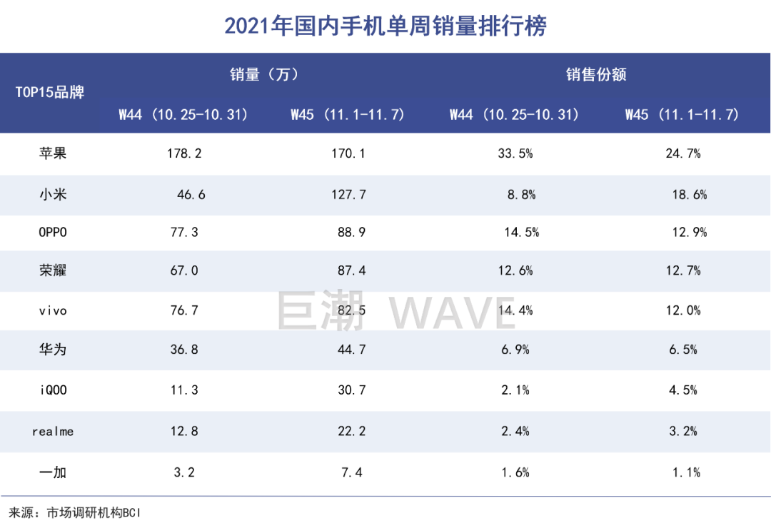 市場調(diào)研機(jī)構(gòu)BCI公布的報(bào)告顯示,雙十一密集促銷的兩周(10.25-11.7),蘋果在國內(nèi)市場的銷量均遙遙領(lǐng)先。