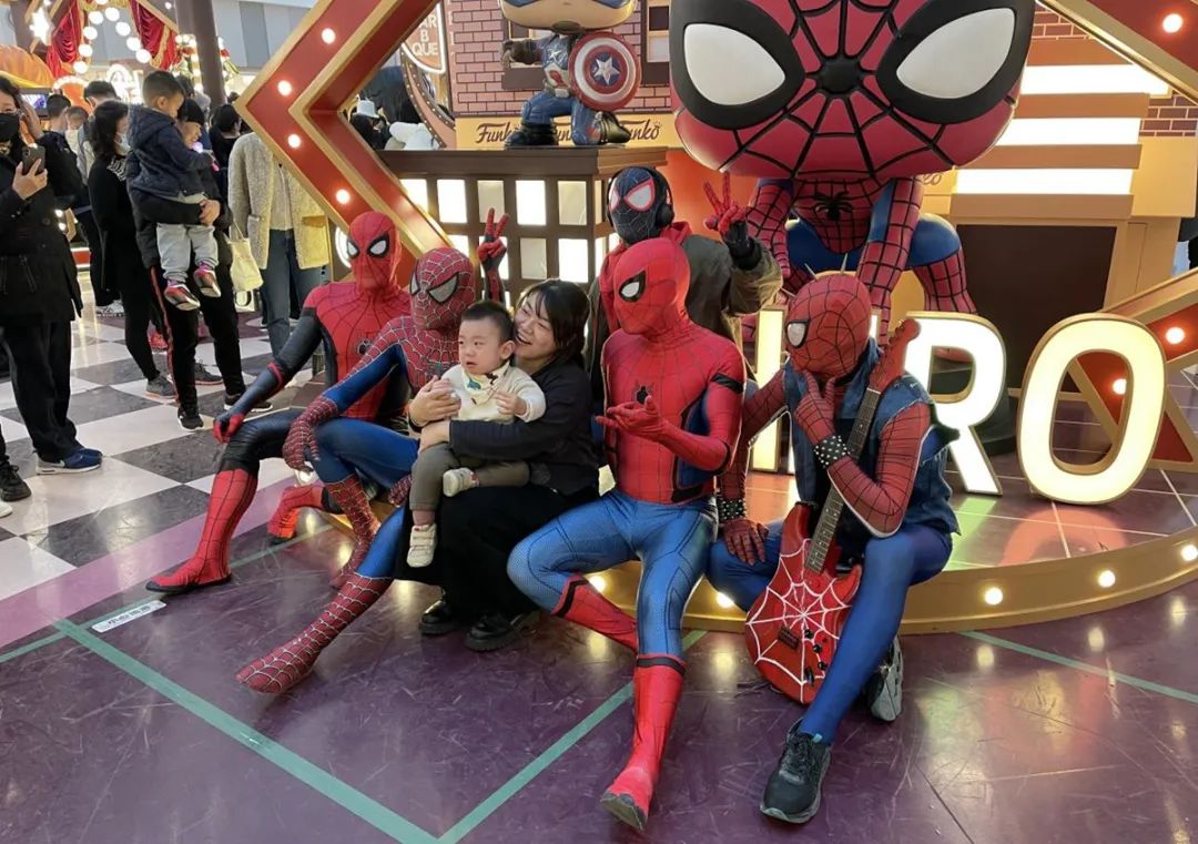 新零售商業(yè)評(píng)論在參觀上海南豐城的Funko快閃店時(shí)發(fā)現(xiàn),其形式更像是一個(gè)小型室內(nèi)游樂設(shè)施,有展示部分,有工作人員表演的大舞臺(tái),還有IP角色的cosplay,如各種造型的蜘蛛俠配合游玩者拍照。