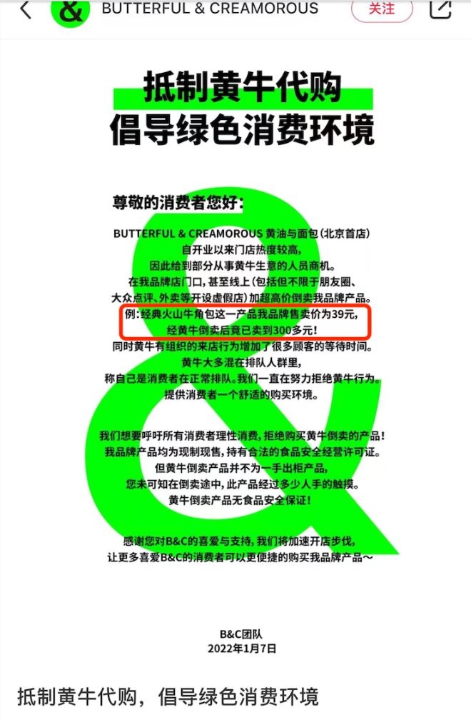 1月7日,B&C官方曬出了一則通告,稱“39元的經(jīng)典火山牛角,被黃牛倒賣到300多元! 評(píng)論區(qū)不買賬,“這不就是你們要的效果嗎?”