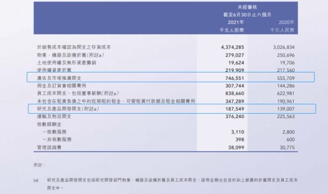 2018年-2020年,李寧的研發(fā)開支在總收入中占比分別為2.2%、2.6%、2.2%。而李寧2021年上半年財報顯示,其研發(fā)投入比為1.84%,相比之前有所下降,而廣告及市場推廣費用支出在整體收入中占比為7.3%。