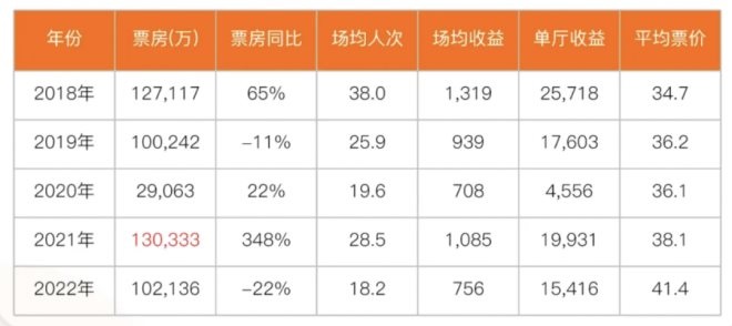 一個殘酷的現(xiàn)實是,雖然票價在上漲,但單個影院平均盈利能力還在下降。據(jù)拓普數(shù)據(jù),2021年電影銀幕數(shù)增長到8.2萬塊,電影總票房是472.58億,也就是說單塊銀幕一年僅分到57萬元收入。而在2018年、2019年,單塊銀幕可分到的收入分別為101萬元、91萬元,僅相較2019年,2021年就下降了37%。
