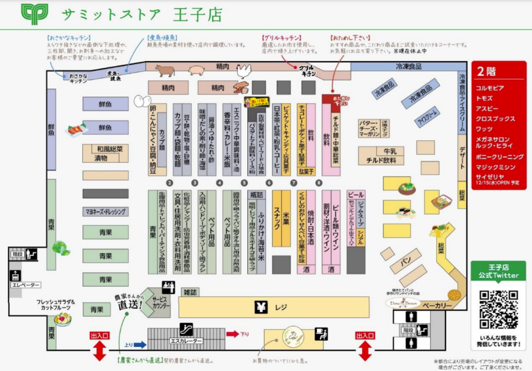 王子店于1993年12月開業(yè),其銷售額在所有門店中排名前五,僅有2300㎡的賣場(chǎng)面積,2020年度貢獻(xiàn)了41億日元(約合人民幣2.3億元)的銷售額。由于近年來(lái)周邊1公里內(nèi)競(jìng)爭(zhēng)店增加,王子店全面刷新賣場(chǎng),2021年11月重新改造開業(yè)。