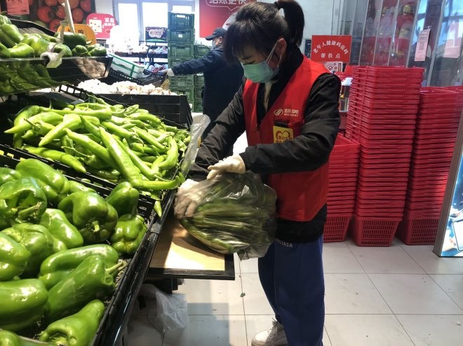 看到有消費(fèi)者囤菜,于永納都會(huì)冷靜提醒:“不用搶,我們每天都有新鮮蔬菜水果進(jìn)店,價(jià)格也沒有變化。店里哪里有空位,我們會(huì)馬上補(bǔ)齊,大家不要慌。”