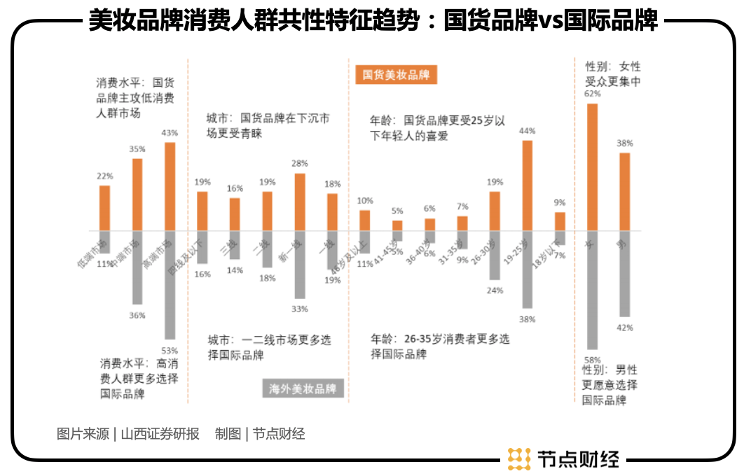另據(jù)微博易大數(shù)據(jù)顯示,國貨美妝品牌中低端消費(fèi)占比約為78%,下沉市場消費(fèi)占比約為54%,25歲以下的消費(fèi)者占比約為53%。