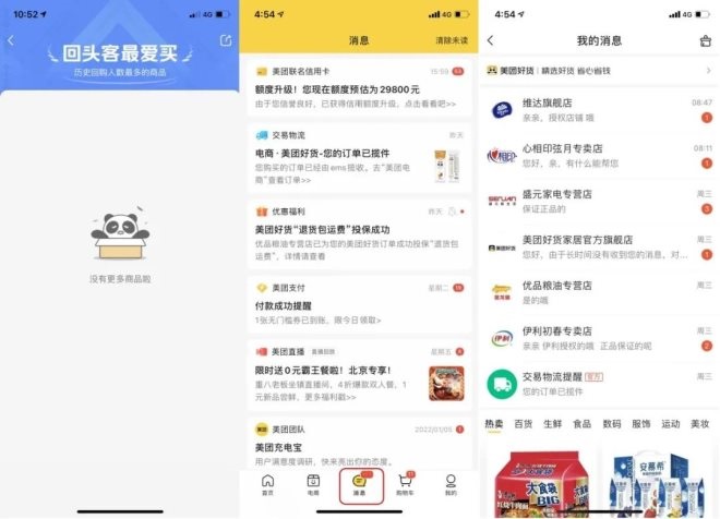 從購物體驗上看,鑒于“美團電商”首頁推薦多為單價較低的零食,價格與拼多多、京東等平臺相差無幾。不過,其特色是一件就能包郵,不需要拼多多的拼團,也沒有京東的運費,這一點體驗比較好。但不足地方也很多,比如頁面無緣無故出現(xiàn)BUG;比如用戶與商家的聊天界面,很容易誤點底部“消息”導航欄,這里的消息并非電商業(yè)務的,而是所有美團業(yè)務的消息都在這里;比如商品品質,雖然美團用“金牌商家”、“美團確保質量”等為商家背書,但遇到不承諾“假一賠十”的商家,用戶還是會質疑;比如SKU問題,點擊手機數(shù)碼進去看到的多為充電寶、數(shù)據(jù)線、手機膜等配件產(chǎn)品,點擊家用電器也多為廚房小家電,較少電視、冰箱、空調等大件。這些品類與美團吃喝玩樂的氛圍倒是挺搭,但對于想買手機、電腦、大件家電的用戶來說,總有一種不靠譜的感覺。