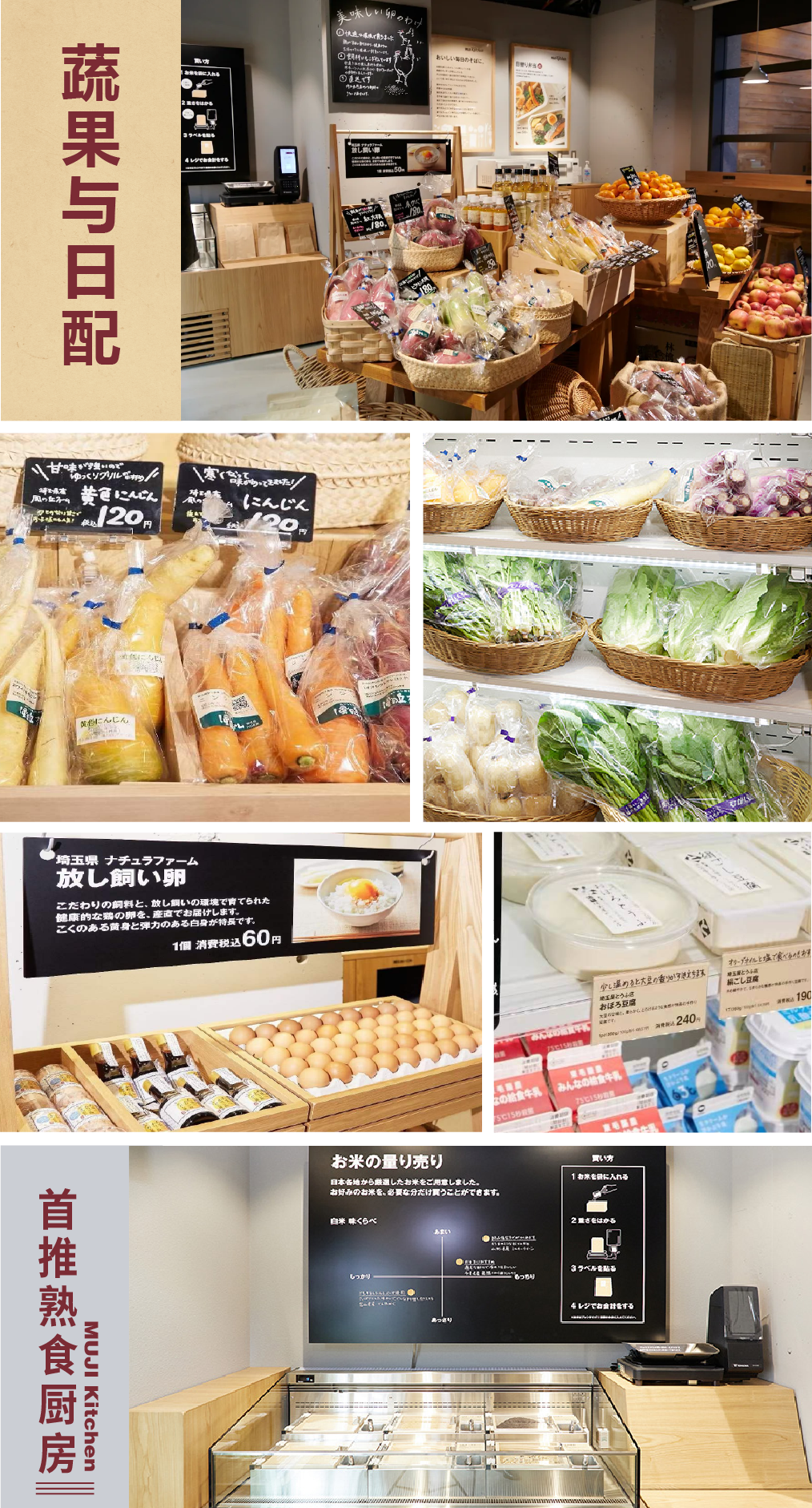 熟食廚房關(guān)聯(lián)銷售應季蔬果和新鮮的乳制品、豆制品、大米、雞蛋等日配商品,這些都是每日餐桌必不可少的食材。無印良品通過提供新鮮美味的食材,讓顧客的餐桌變得更加多彩。