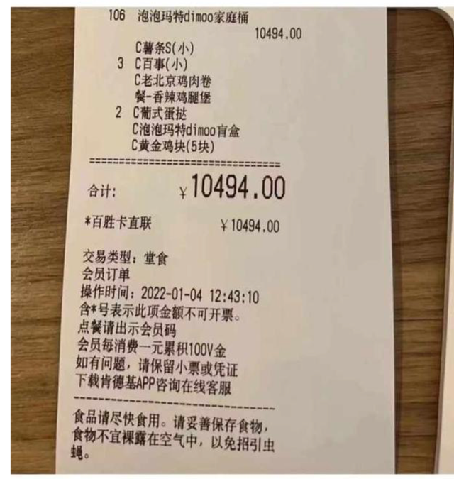 一次性買6份套餐,是為了盡可能避免抽到重復(fù)的盲盒,從而增加抽到隱藏款的可能性。在社交平臺(tái)上,有博主曬出天價(jià)賬單——花費(fèi)10494元,買了106份套餐。