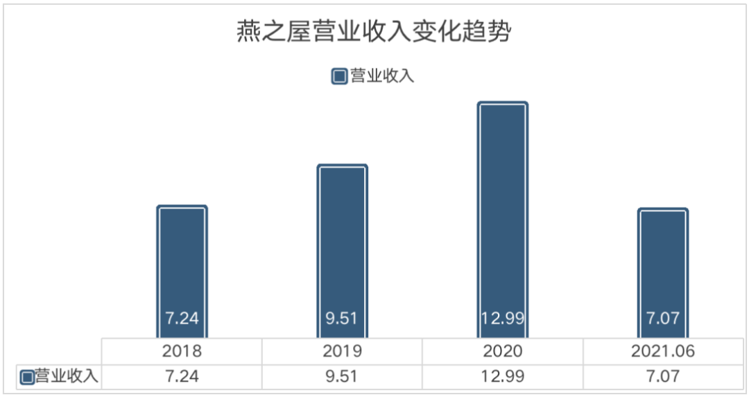 營業(yè)收入和毛利率支持了“來錢快”的說法,根據(jù)燕之屋遞交的招股書顯示,2018年至2021年上半年,燕之屋的營收分別為7.24億元、9.51億元、12.99億元、7.07億元。