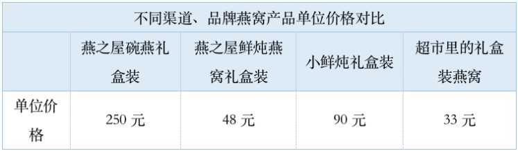 與此同時,走訪武漢各大超市能夠發(fā)現(xiàn),冰糖燕窩產(chǎn)品售價均在300元以下,其他保健品價格也沒有突破千元。對于有送禮需求的線下顧客來說,燕之屋很難切入大部分人的消費場景。