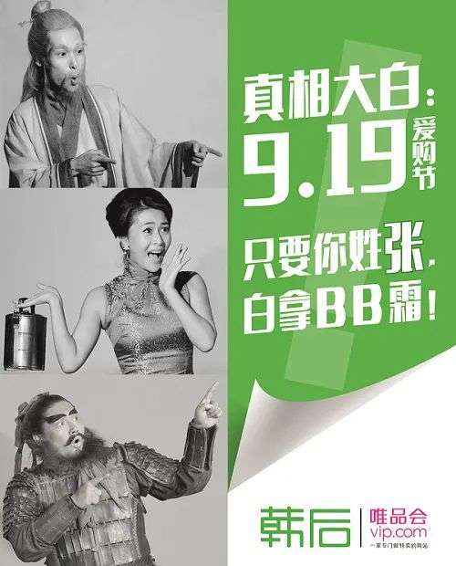 早在2014年,作為國產(chǎn)護(hù)膚品牌,韓后就采用過“只要你姓張,白拿BB爽”的姓氏營銷打法。之所以用“姓張”切入,是因?yàn)榍耙荒昶湓诿襟w發(fā)布小三喊話原配、原配迎接挑戰(zhàn)、“張先生”出面表態(tài)等系列廣告,積累了知名度。
