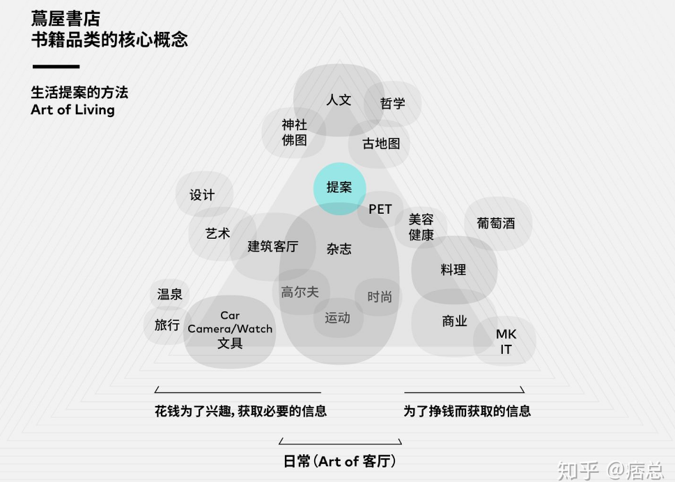 1、蔦屋書店不是書店,是商業(yè)綜合體(書店+綜合體)。蔦屋書店以書籍為核心,在書籍的基礎(chǔ)上添加相關(guān)的生活場景,最終形成“一站式生活空間”商業(yè)模式。類似宜家、MUJI概念,可以包羅萬象。