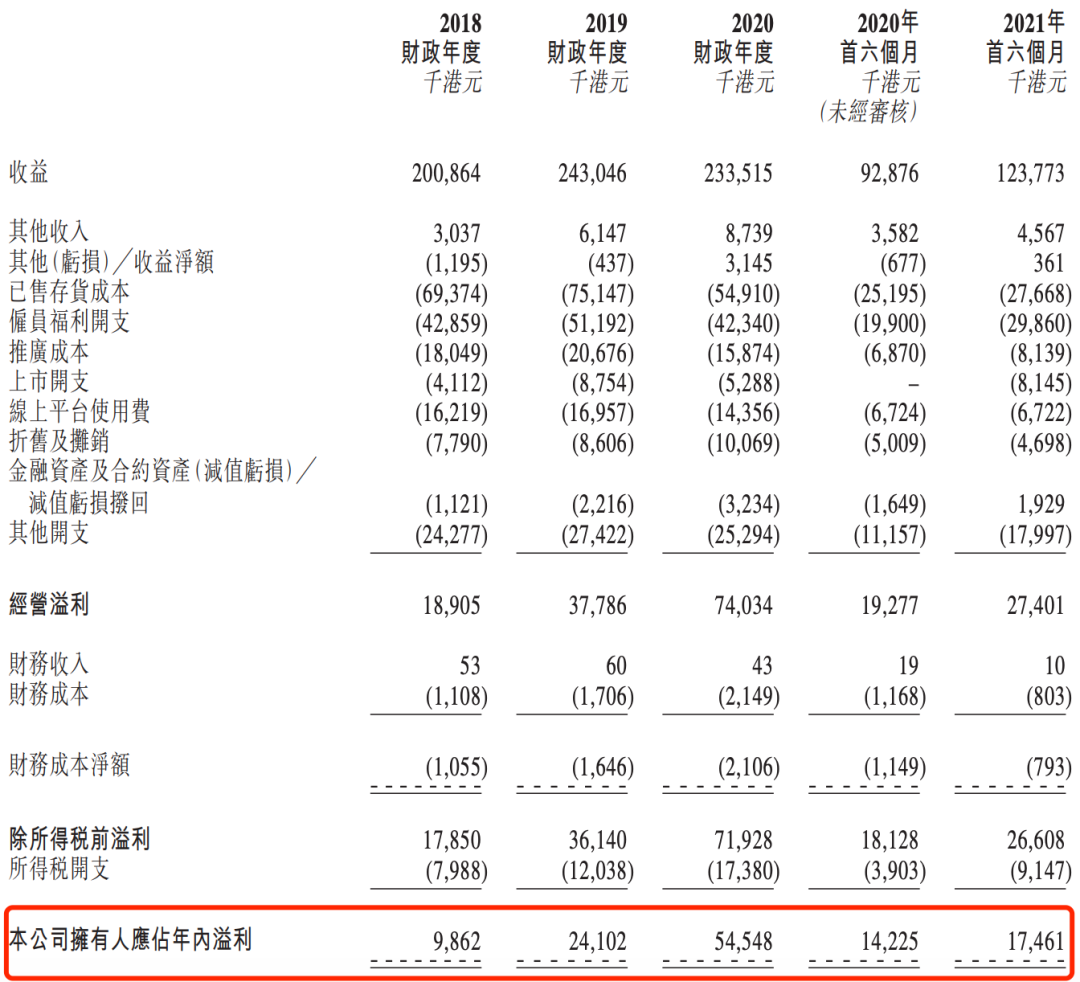 同時(shí),依靠后期低成本的IP授權(quán)業(yè)務(wù),德盈控股已經(jīng)實(shí)現(xiàn)連續(xù)盈利。2018-2020財(cái)年的凈利潤分別為986.2萬、2410萬和5454.8萬港元。2021財(cái)年上半年的凈利潤1746.1萬港元,較上年同期的1422.5萬港元增長22.7%。