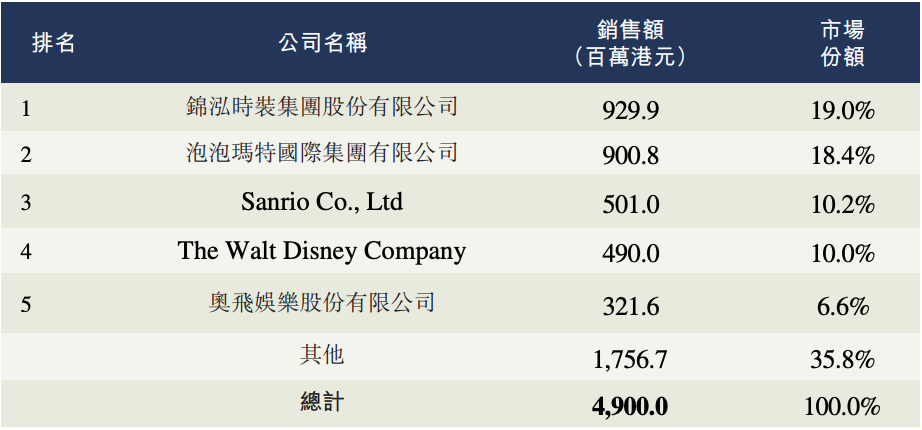 先看IP授權(quán)賽道。從結(jié)果來看,根據(jù)弗若斯特沙利文的報(bào)告,按2020年的角色授權(quán)收益計(jì)算,德盈控股排名第五,市場份額為2.4%,落后于國內(nèi)玩具廠商奧飛娛樂,與另一位國內(nèi)游樂園玩家方特文化近乎持平。