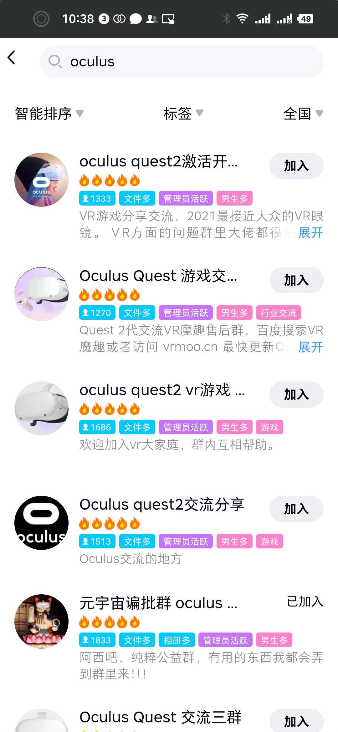 而對(duì)比下來(lái),Oculus的國(guó)內(nèi)用戶更多是因?yàn)橛螒蚱平庑枨,聚集在QQ群中。