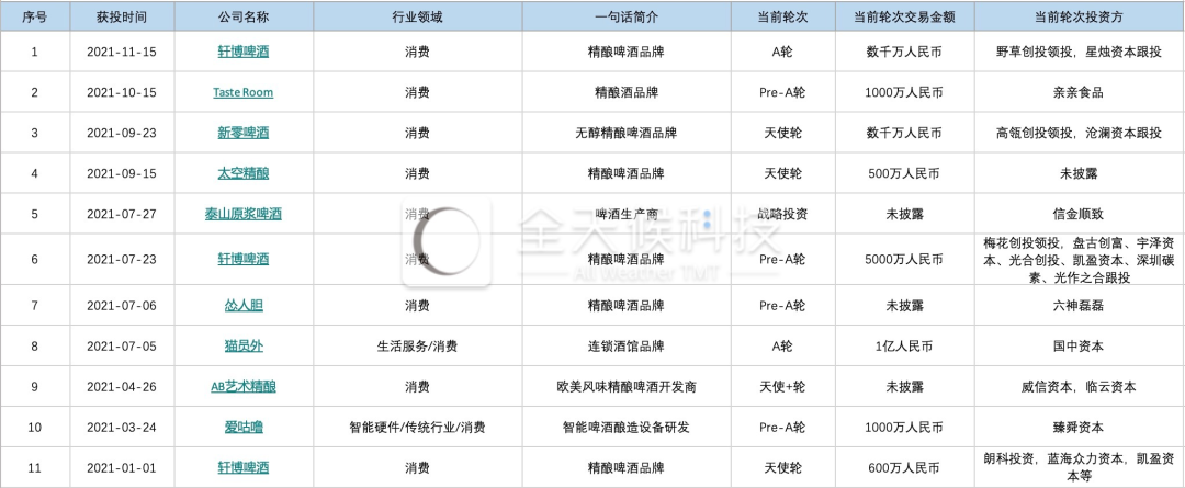 在2021年中旬,肖華(化名)參與了一起精釀品牌的投資。據(jù)他透露,在2021年上半年,許多VC看過新酒飲賽道,對精釀也表示出了興趣,但整體投下來的項(xiàng)目并不多。