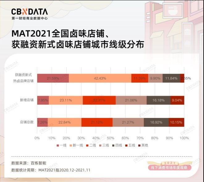 在門(mén)店布局上,鹵味品牌在2021年也一改菜市場(chǎng)、地鐵站的“接地氣”畫(huà)風(fēng),大舉進(jìn)軍高線級(jí)城市,布局熱門(mén)商圈和高檔社區(qū)。
