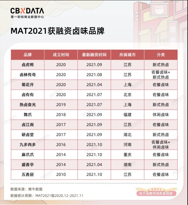 縱觀2021年,佐餐鹵味品牌紫燕百味雞沖刺上市;年內(nèi)獲得融資的鹵味品牌中,佐餐鹵味和新式熱鹵是最受資本青睞的類型,也有部分品牌走“復(fù)合”路線。過(guò)去主要由“三巨頭”打下的由休閑鹵味占據(jù)行業(yè)頭部的局面或?qū)⒈淮蚱。鹵味賽道的競(jìng)爭(zhēng)重點(diǎn),或已從消閑零食,向家庭佐餐甚至熱鹵快餐轉(zhuǎn)移。