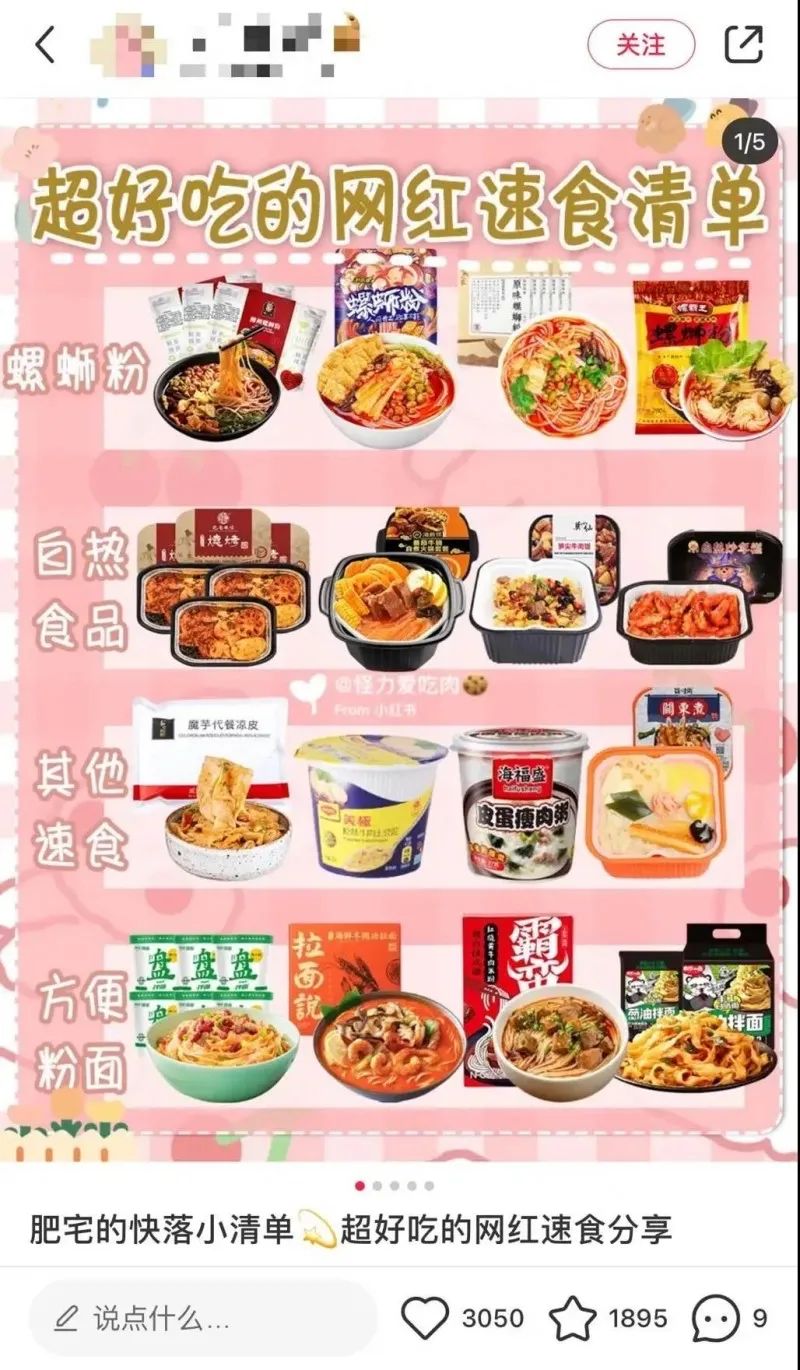 熱門帖子推薦的多款速食品,圖/小紅書