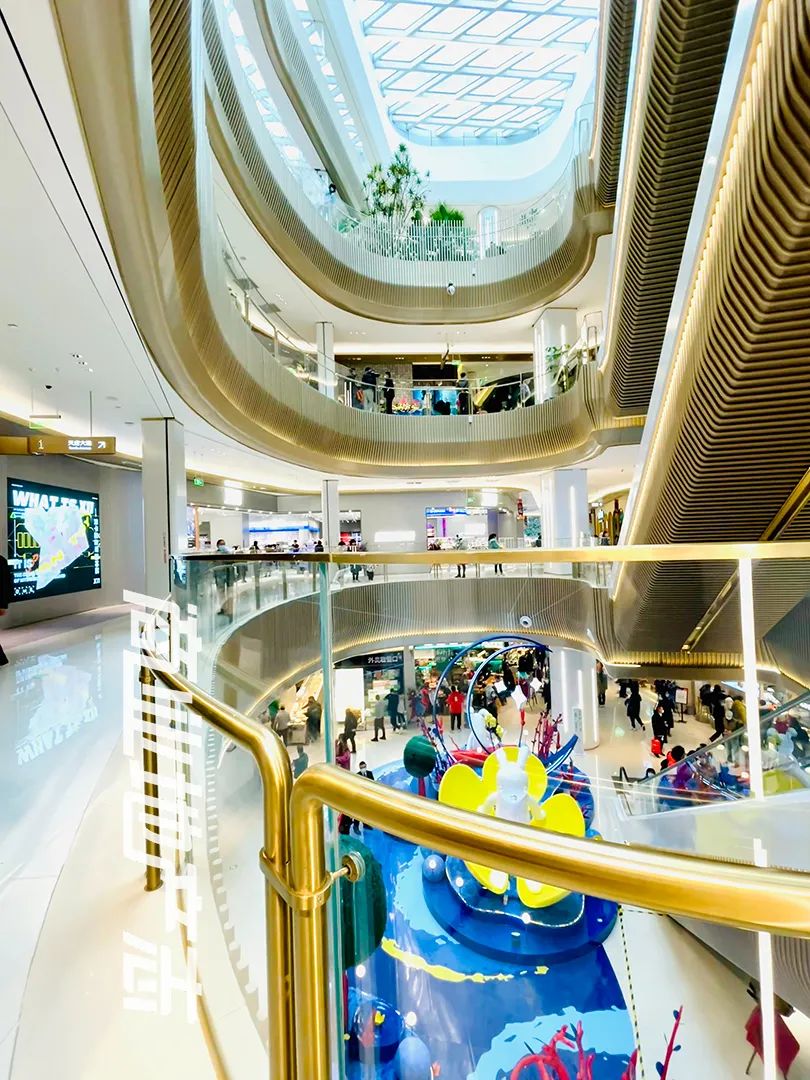 柵欄狀的圍擋裝飾十分搶眼,大量被用在扶梯、中庭等區(qū)域,定制程度也足夠深,容易讓人留下深刻的印象。