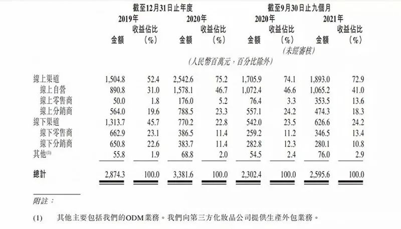 線上渠道的戰(zhàn)略布局,使得上美集團迎來新的發(fā)展時代。2020年2月左右,線下銷量下滑95%,但是線上渠道增長了107%。招股書顯示,2019年、2020年及截至2021年9月30日止九個月,上美集團的線上銷售額分別為15.05億元、25.43億元、18.93億元,分別約占公司同期總收益的52.4%、75.2%及72.9%。