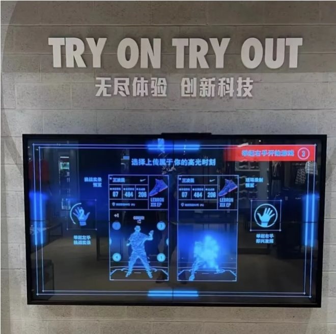 此次該店登陸杭州除了帶來了全系列的貨品,還配備了高端的跑步體驗區(qū),在二樓男子鞋墻,還配置了籃球體驗區(qū),利用AR增強現(xiàn)實技術(shù),將虛擬信息與真實世界巧妙融合,即使沒有對手,也可以讓消費者們感受到籃球運動的激情。