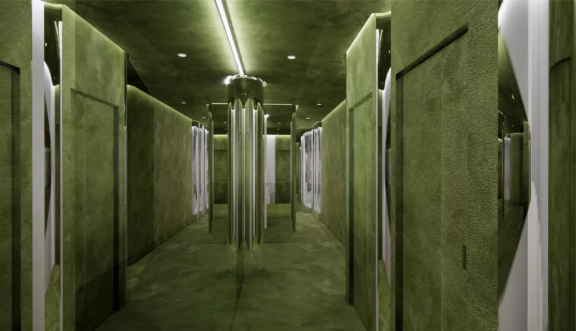 特別設(shè)計的機械電機系統(tǒng)和動感藝術(shù)裝置立面融入古舊的樓體結(jié)構(gòu),鏡面材料和傳感裝置豐富了歷史的骨骼;以高科技和裝置堆疊起店內(nèi)標志性雕塑,也得以讓現(xiàn)代科技與舊時雕梁琴瑟和弦,為整座禪院換上了一幅“全新容顏”。