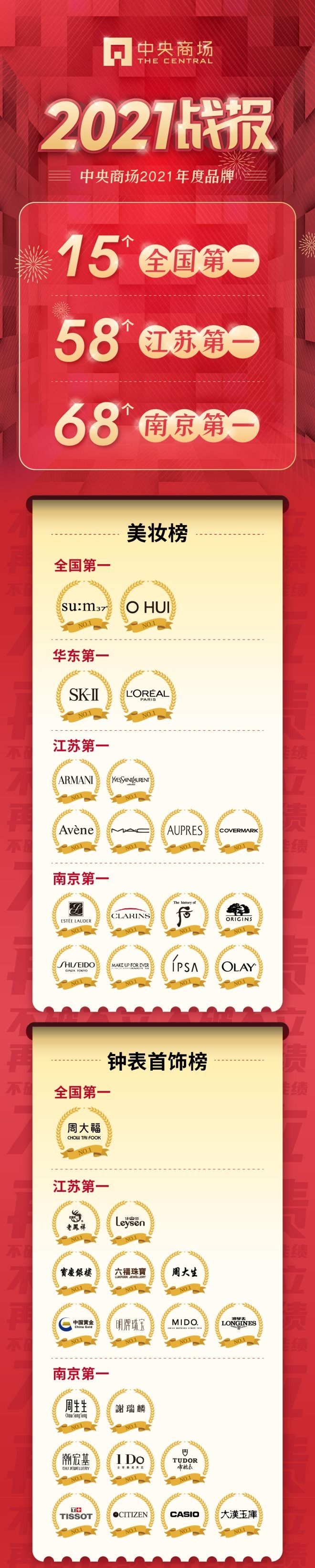 中央商場新街口店2021年戰(zhàn)報:15個全國第一