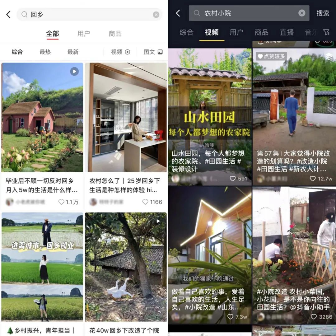 圖 / 小紅書和抖音上充斥著回鄉(xiāng)改造小院的內(nèi)容