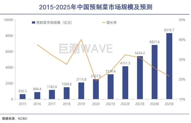 NCBD(餐寶典)的《2021—2022中國預制菜行業(yè)發(fā)展報告》顯示,2021年中國預制菜市場規(guī)模超過3000億元,預計到2025年將會突破8300億元。