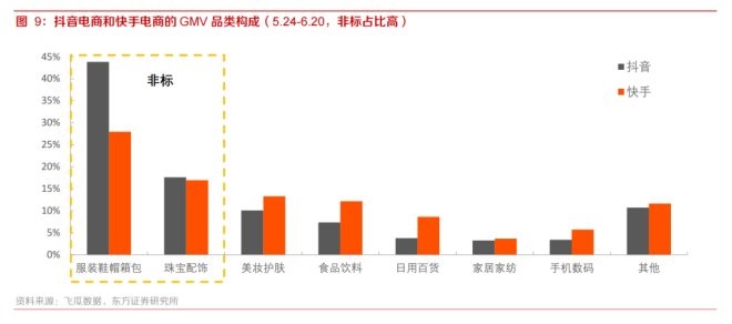 回到年貨節(jié)。一方面,消費者有一定的消費偏好,有報告指出,服裝、電器、家居用品、食品、美妝視頻、母嬰是年貨節(jié)的熱門品類,其中又以服裝品類占比最高。這些也是整體電商大盤中GMV占比較高的品類。