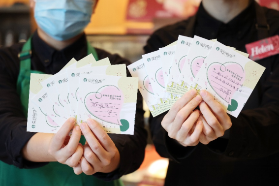 自1月25日起至春節(jié)前,星巴克的星級(jí)咖啡師們將化身為“美好咖啡星使”。他們會(huì)將前一日送出美好咖啡的愛心顧客的微信昵稱和所在城市,手寫在專屬杯貼上,用心制作一杯杯熱氣騰騰的拿鐵,再以顧客的名義,贈(zèng)送給防疫衛(wèi)士、社區(qū)工作者和專星送外送員,感謝守護(hù)大家過好新年的這一群熟悉的“陌生人”。
