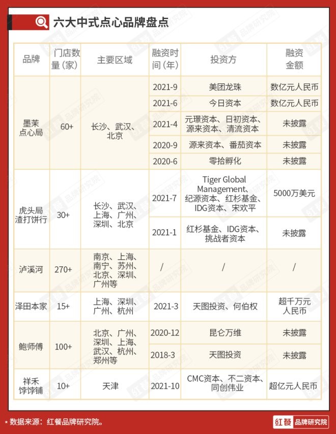 新中式烘焙在融資上,更是達到了“瘋狂”的境地。墨茉一年多的時間里,拿到了5次融資,10個月的時間估值翻了500倍,一度單店估值過億。此前有投資人稱,墨茉點心局、虎頭局、瀘溪河已成很多機構搶都搶不到的投資品牌,3家品牌估值都在20億元左右。