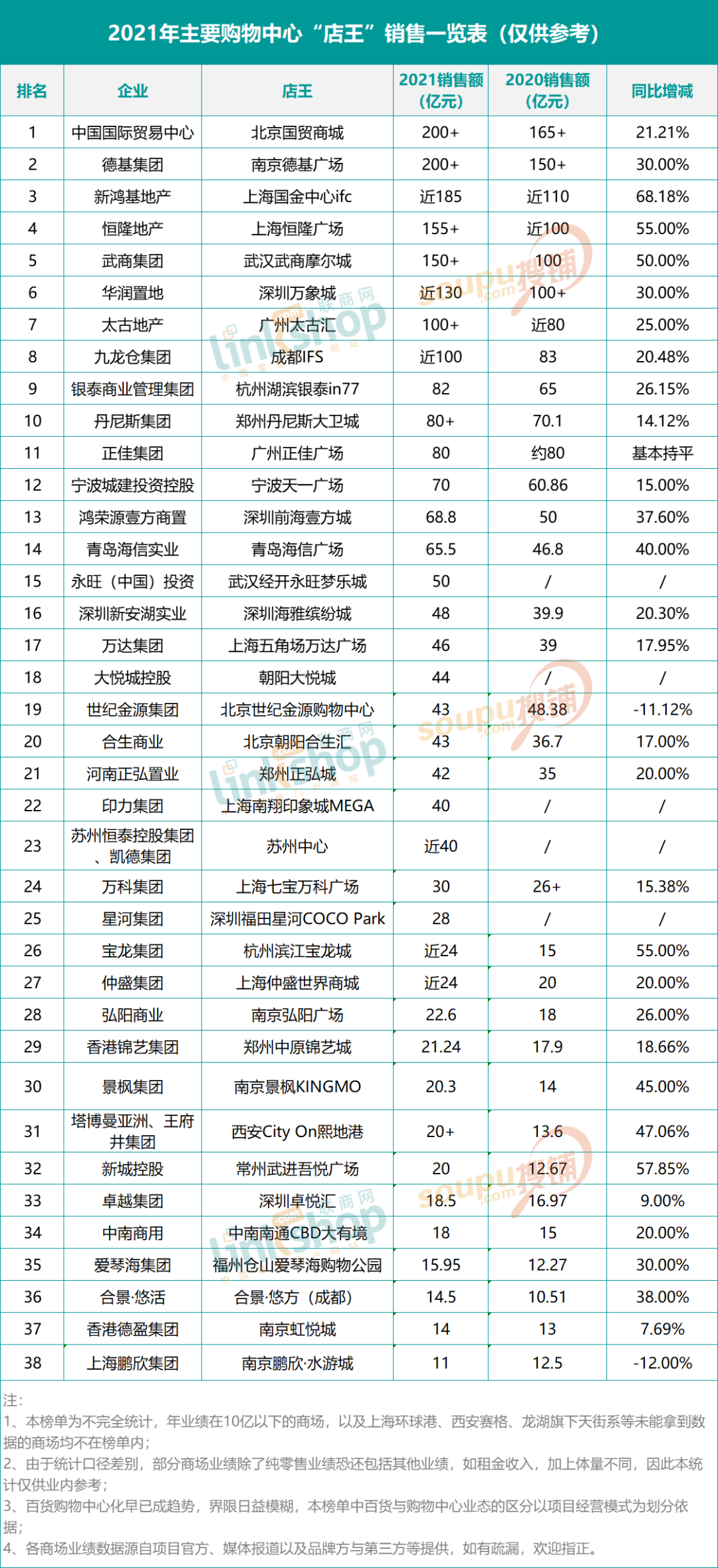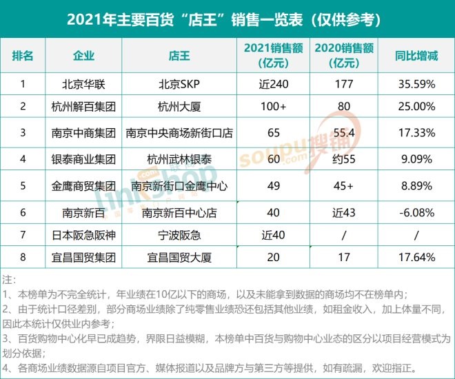 全國(guó)主要商場(chǎng)“店王”2021業(yè)績(jī)排行榜出爐