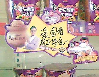 康師傅被冠上日企名號(hào)時(shí),統(tǒng)一貨架上也貼出了一句話:愛(ài)國(guó)者就支持統(tǒng)一。
