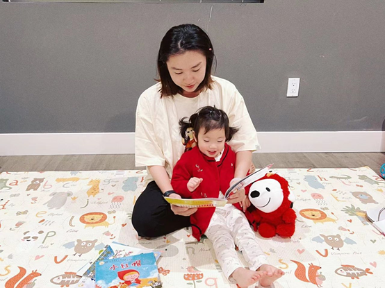 (圖:在紐約工作的劉女士和女兒一起閱讀在京東全球售上購買的童書)