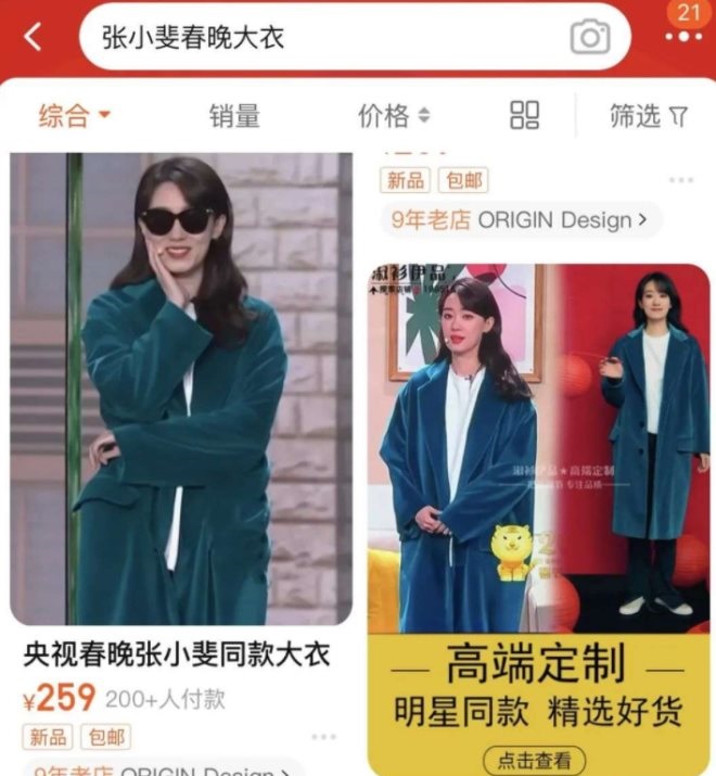 你或許沒(méi)看過(guò)甚至不知道張小斐和賈玲的小品《喜上加喜》講的是啥,當(dāng)膚白貌美的新晉金雞獎(jiǎng)影后穿著孔雀綠絲絨大衣亮相時(shí),另一邊“張小斐同款”在某寶發(fā)射第一炮。