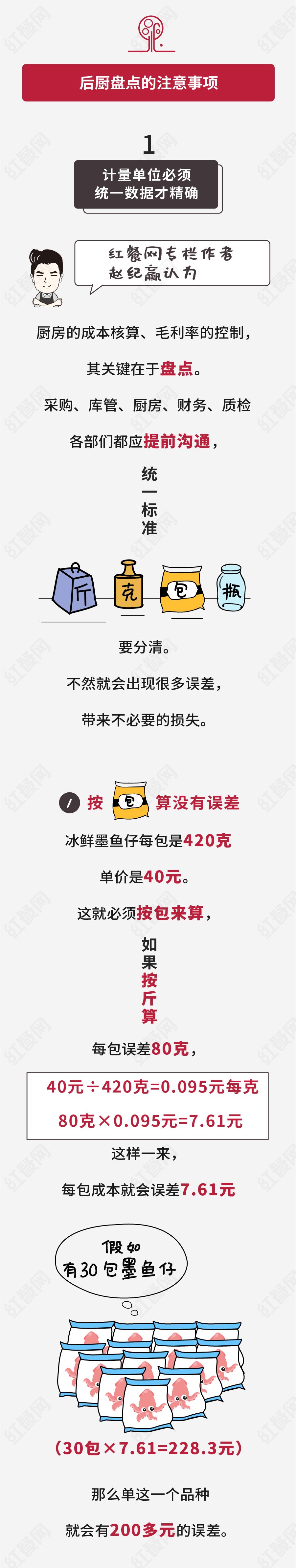 本文部分內(nèi)容摘自紅餐網(wǎng)專欄作者趙紀(jì)贏《廚房的成本核算、毛利率控制關(guān)鍵在于盤點(diǎn)》一文。