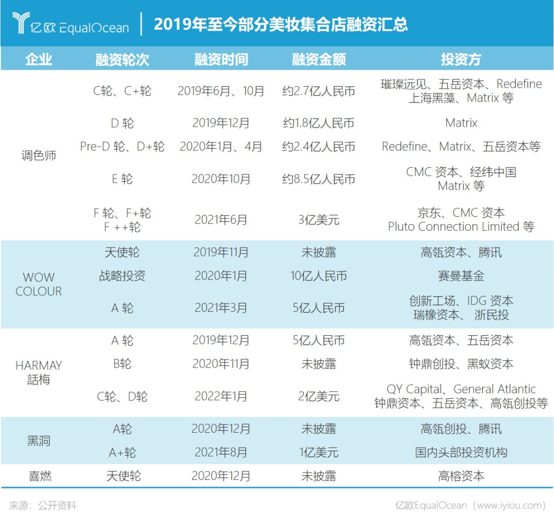 值得注意的是,在新型美妝集合店的崛起中,資本始終扮演不可替代的角色。