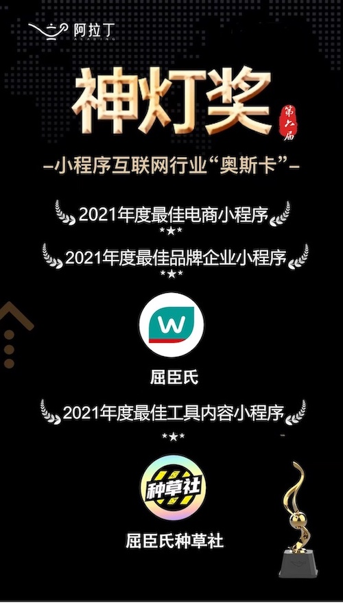 屈臣氏憑借其在小程序上獲得的成果及O+O零售模式下展現(xiàn)的巨大活力與領(lǐng)先優(yōu)勢(shì),再度入選阿拉丁研究院小程序白皮書優(yōu)秀案例,更一舉斬獲被譽(yù)為“小程序互聯(lián)網(wǎng)領(lǐng)域奧斯卡”的2021年阿拉丁神燈獎(jiǎng)“年度最佳品牌企業(yè)小程序”“年度最佳電商小程序”兩項(xiàng)殊榮,而“屈臣氏種草社”則榮獲“年度最佳工具內(nèi)容小程序”。