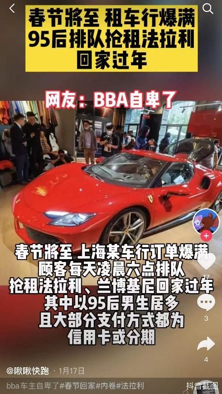 抖音等短視頻平臺上為部分網(wǎng)紅“撐門面”的超豪華車型,春節(jié)期間也成為租車市場的新網(wǎng)紅,法拉利、蘭博基尼、邁凱倫、瑪莎拉蒂、勞斯萊斯等品牌車型一車難求。