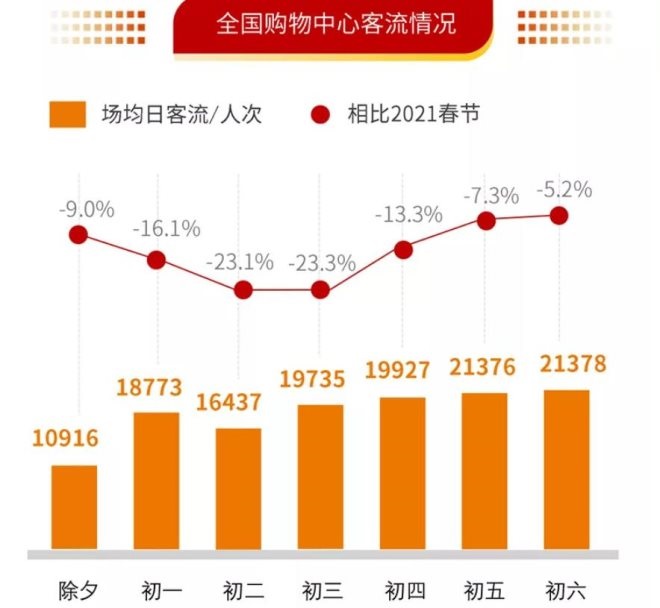全國(guó)購(gòu)物中心春節(jié)總客流6.2億人次 單日客流均同比下滑