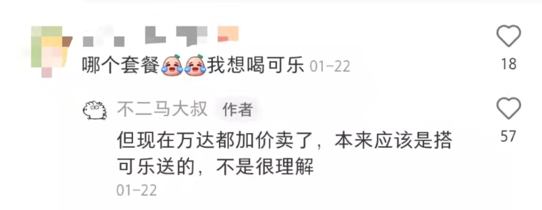 值得注意的是,價(jià)格上漲近6倍的如虎添翼掛件,最初的設(shè)定僅為可樂(lè)杯贈(zèng)品:“但現(xiàn)在萬(wàn)達(dá)都加價(jià)賣了,本來(lái)應(yīng)該是搭可樂(lè)送的,不是很理解!迸只(chuàng)作者不二馬在小紅書這樣回復(fù)網(wǎng)友。