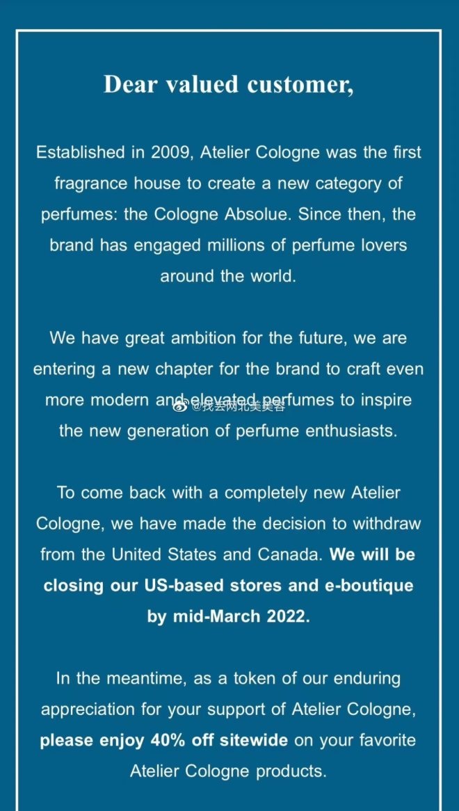 近日,在小紅書和微博上的多個博主發(fā)文或曬出截圖,稱收到歐瓏發(fā)送的郵件,品牌透露將在今年3月中旬關(guān)閉美國和加拿大地區(qū)的線下和線上商店。