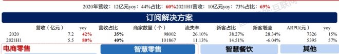智慧餐飲:主要看滲透率和客單價,尤其是滲透率,這部分的增長較為穩(wěn)定。同時占比也不高,21H1占到了訂閱收入5%的比例。