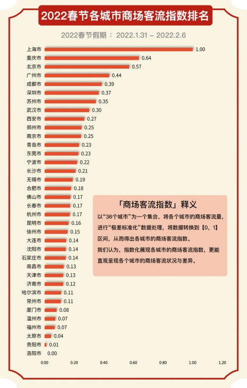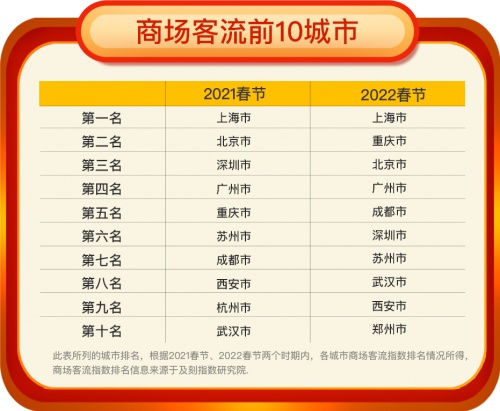 2022春節(jié)新一線、二線城市商場(chǎng)、餐飲客流增長(zhǎng)領(lǐng)跑