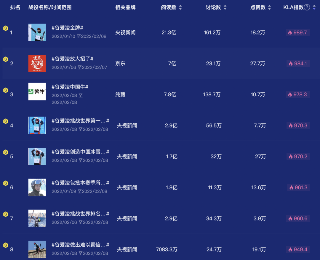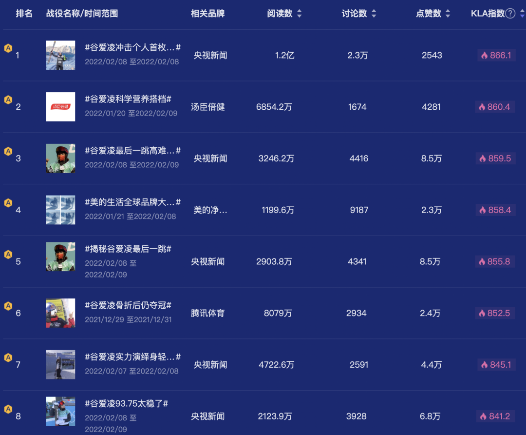 圖片來自:時趣洞察引擎 谷愛凌相關(guān)A級別營銷戰(zhàn)役