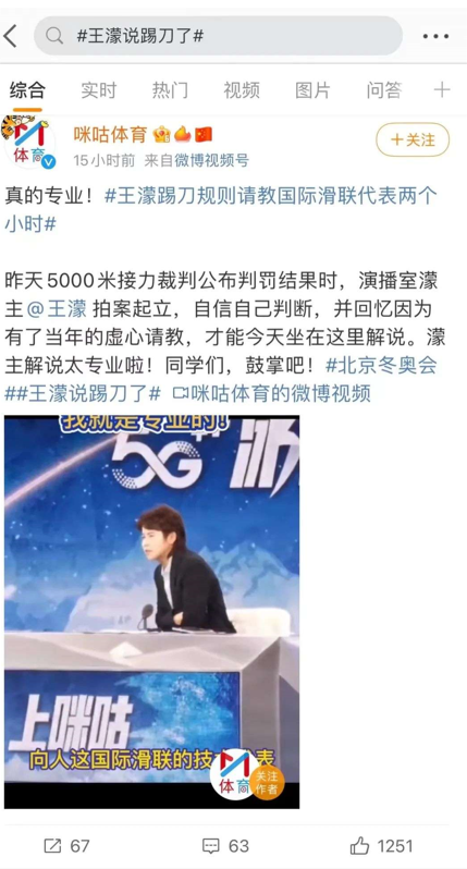 日前,話題“王濛說踢刀了”登上微博熱搜榜,話題閱讀量達(dá)3.4億。這是因?yàn)樵谀凶?000米接力半決賽中,李文龍摔出賽道,正當(dāng)大家擔(dān)心時(shí),在咪咕解說的王濛卻信誓旦旦地說這是踢刀了,肯定判進(jìn),結(jié)果果然如王濛所預(yù)料。之所以這么肯定,是因?yàn)樗?jīng)歷過同樣的事情,并且向國(guó)際滑聯(lián)技術(shù)代表請(qǐng)教了整整兩個(gè)小時(shí)這種情況下的規(guī)則。